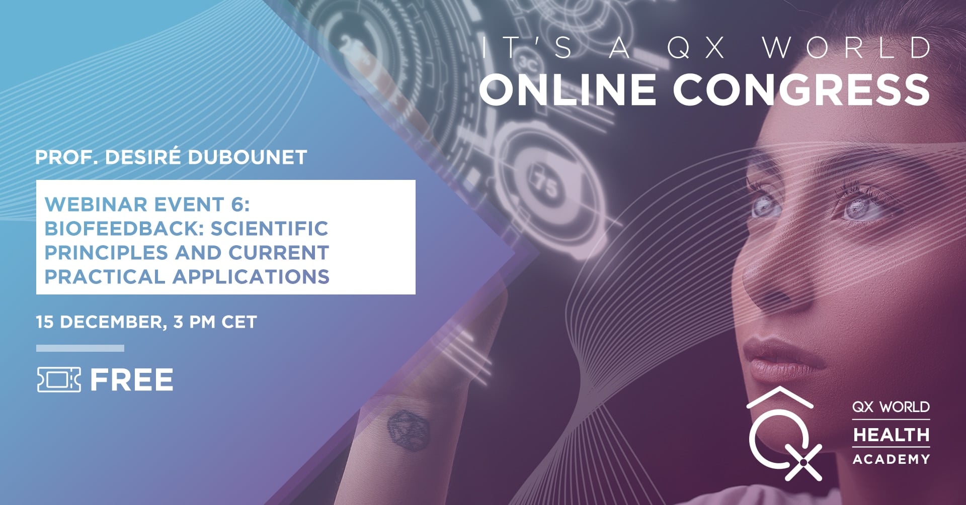 We feel honored that you decided to share this journey with us and you can expect much more to come. For now, to put the icing on the cake, we would like to invite you to take part in the sixth and last webinar: the closing of the congress filled with substantial information about the scientific principles and current practical applications of biofeedback hosted by Desiré Dubounet.